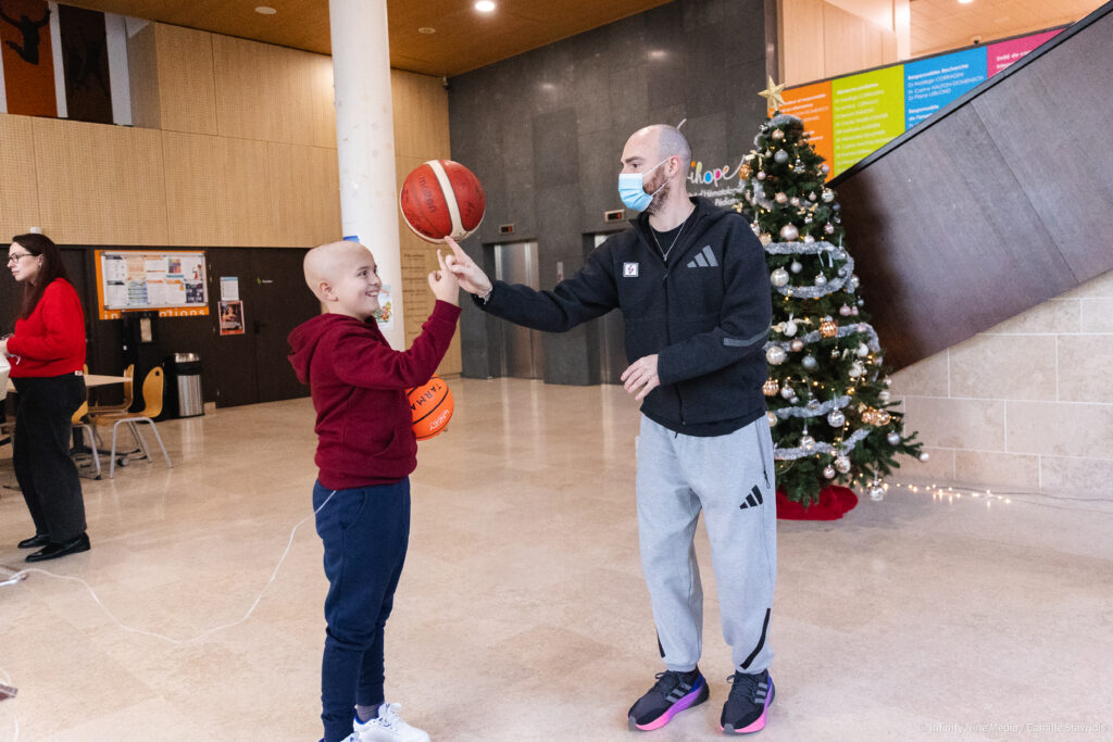 Plusieurs joueuses de LDLC ASVEL Féminin, accompagnées de leur coach Yoann Cabioc’h, se sont rendues à l’IHOPe pour partager un moment fort en émotions avec des enfants hospitalisés.